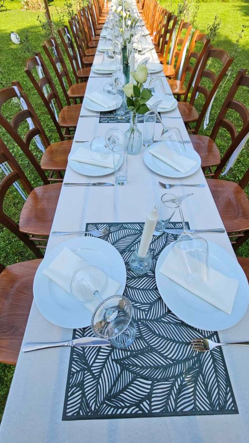 Unsere Leistungen umfassen neben der Speisenversorgung auch alles, was nötig ist, damit Sie Ihre Mahlzeiten praktisch überall genießen können – sei es in geschlossenen Räumen oder auf einer offenen Wiese. Wir bieten auch die Vermietung von Inventar an (Besteck und Teller, Gläser, stehende runde Tische, Buffet-Tische, Tischdecken und weiteres Zubehör) sowie die Auswahl und den Ausschank von Getränken – sei es morgens Kaffee mit Croissants oder Sekt bei feierlichen Anlässen.